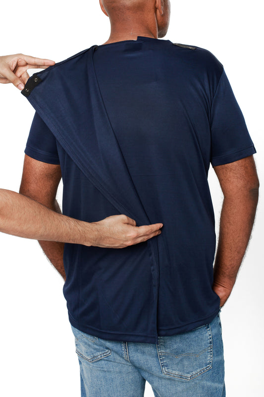 Round Neck Blue T-Shirt | Open Back Adaptive Clothing for MenVendor:LUBOSH ADAPTIVE WEARRegular price $34.99 CADRegular priceUnit price per-